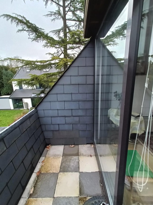 Dans cet immeuble de logements situé sur le territoire de la commune d’Auderghem, entre la forêt de Soignes et le boulevard du Souverain, le logement aménagé au 2ᵉ étage n’est pas reconnu par l’urbanisme. En situation de droit (situation légale), ce niveau était affecté à des combles-grenier. Dans les faits, il est occupé depuis de nombreuses années en tant que studio disposant de ses propres équipements et d’un espace extérieur privatif (terrasse tropézienne).